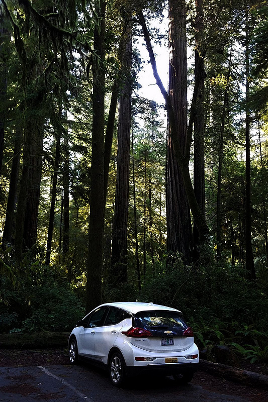 We bought the Bolt in early December, so as I write this in mid-April we’ve had it for approximately 4-1/2 months. In that time, we’ve put about 4,200 miles on it. This has been mostly local driving and short trips within our southern Oregon/northern California region, but we’ve also used the car on two extended overnights, one to the northern California coast (with a side visit to Redwood National Park) and the other to our daughter’s home in San Jose, California. Not once while on the road during any of those trips have I wished I was driving a gasoline-powered car instead. Like any other car, it’s just a matter of drive it, fuel it, drive it some more. It’s good for several straight hours of freeway driving, and you want a break after that anyway.