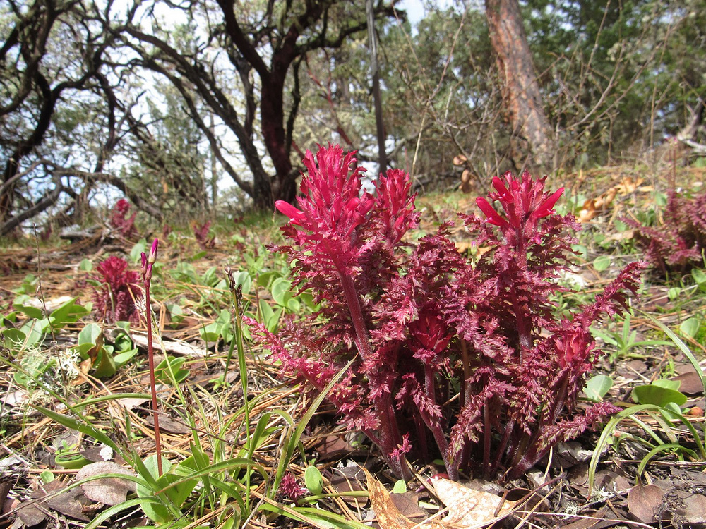Mar 30, 2019: Took advantage of a sunny afternoon and took our first real flower hike of the season in the Cathedral Hills, a joint Josephine County/BLM wild area on the southern outskirts of Grants Pass. We went in by the Sky Crest trailhead (circled in blue on the map) and followed the route marked in red – out via the Timber Riders Trail to the intersection marked with a small 3 in a yellow circle, then down the Outback Trail to the Ponderosa Pine Loop. Back via the Outback Trail to its closest approach to the trailhead, then the rest of the way back to the car on the Timber Riders Trail again. Flowers are about three weeks behind last year. A feature of the Cathedral Hills is the massive number of Indian Warriors (Pedicularis densiflora) found along its trails, and they certainly didn’t disappoint – but there were plenty of other species, too. Here is a small smattering of the 83 photos I took: enjoy.