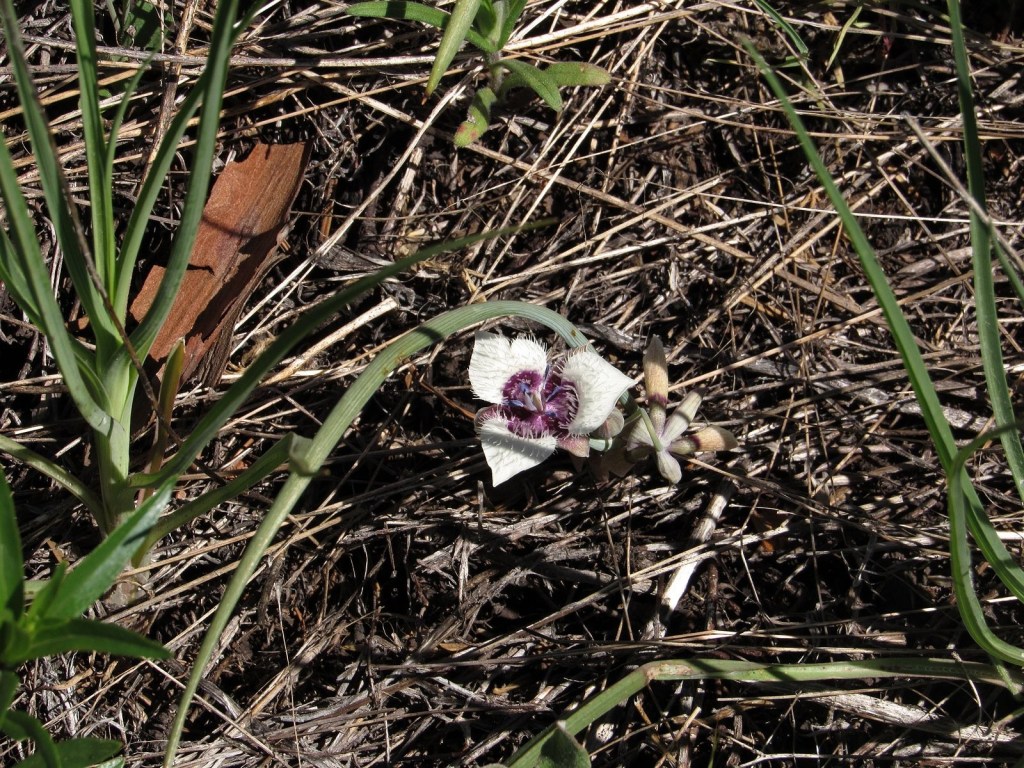 Elegant cat’s-ear lily, rare anywhere: it differs from the much more common Tolmie’s cat’s-ear by having pointed petal tips without hairs.