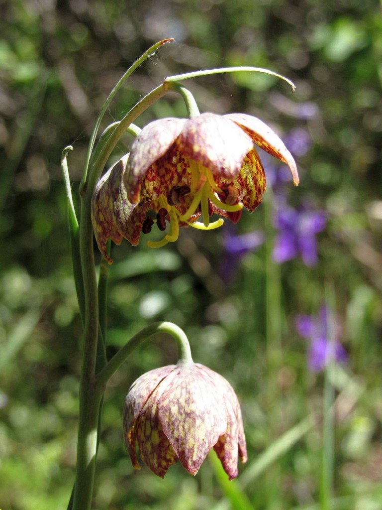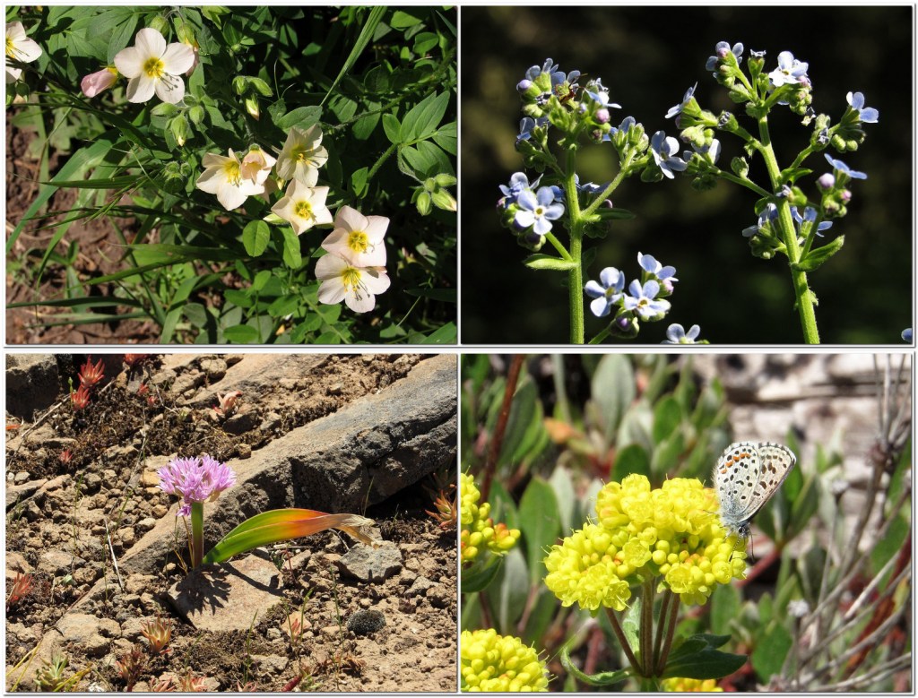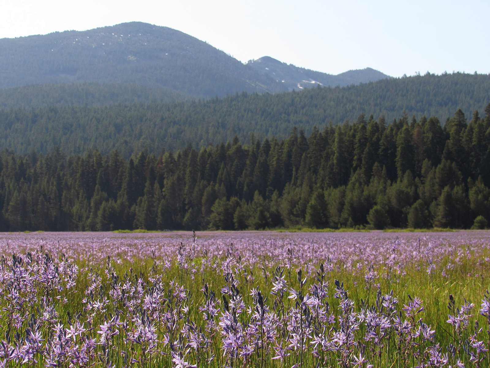 We hiked the Grizzly Peak trail most recently on June 13, 2019. We made a full day of it, traveling first 12 miles north of Medford to Eagle Point for breakfast at the Barbed Wire Grill, then east up the Brownsville Road and Highway 140 40 miles to the Great Meadow near Lake of the Woods, where I had heard that a major camas bloom was happening. It was. Most of the west end of the immense meadow was covered with the purple flowers of Great Camas, Camassia leichtlinii. Thousands of Camassia leichtlinii. They made a spectacular show in the early morning light, under the high peaks of the Mountain Lakes Wilderness, and I was immensely grateful to Kimberly Hill, whose pictures of the meadow on the Oregon Wildflower Facebook page the day before had alerted me to their presence.