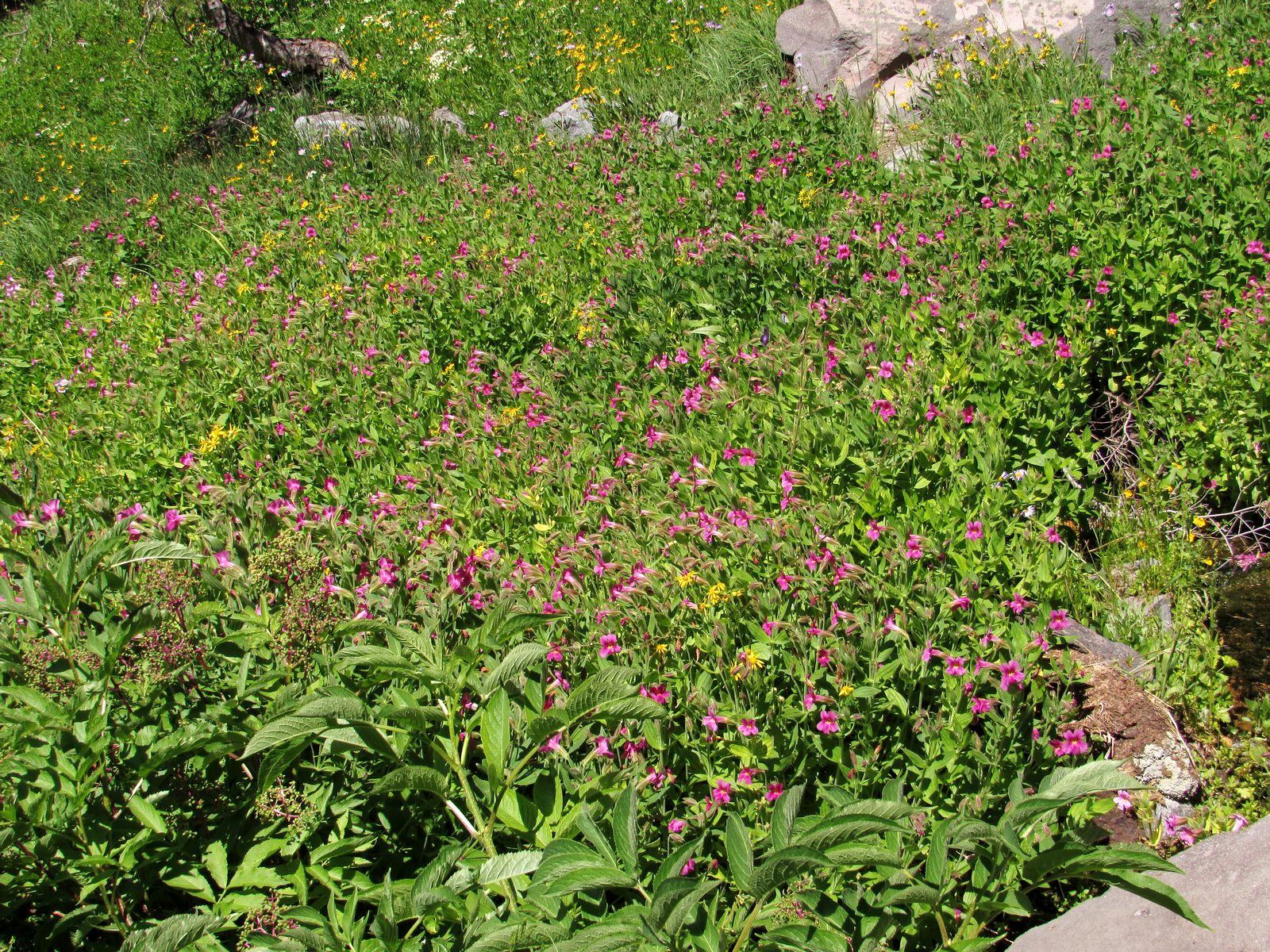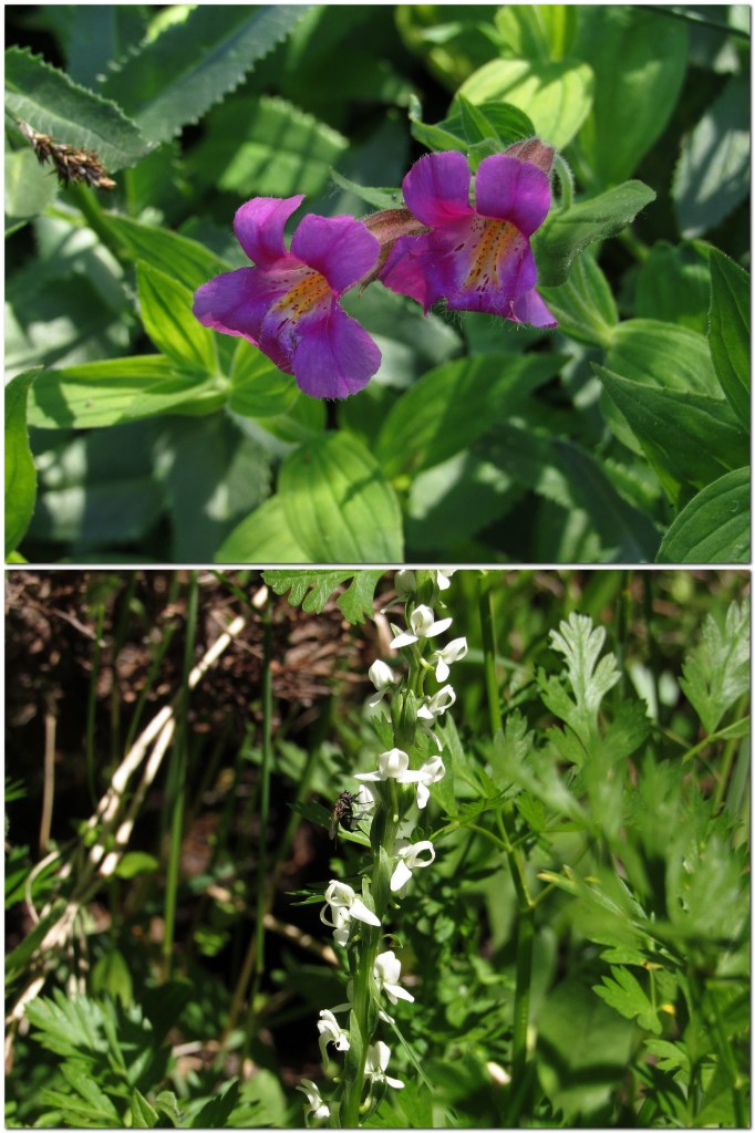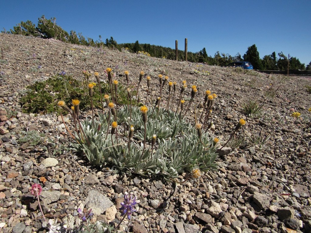 Otherwise, the trip was a mixed bag. We got to Mazama Village, where we had planned to have brunch, just as the breakfast line was closing. (We were standing by the counter preparing to order when they suddenly announced that breakfast was over and took all the food away. We were the only ones waiting.) The small collapsible tripod I was carrying to try out for flower photos kept pinching me, leaving me with a blood blister on one hand and a cut thumb on the other. I left my camera bag behind at one stop (the camera wasn’t in it, so I lost only my spare camera battery and cleaning cloth, but still…). But the scenery and the flowers overwhelmed all of that. Looked back on, it was a simply glorious ten hours. Enjoy the pictures. You can follow the course of our day in the captions.