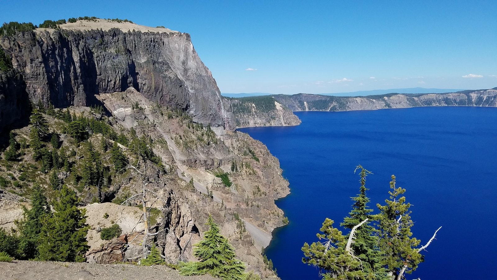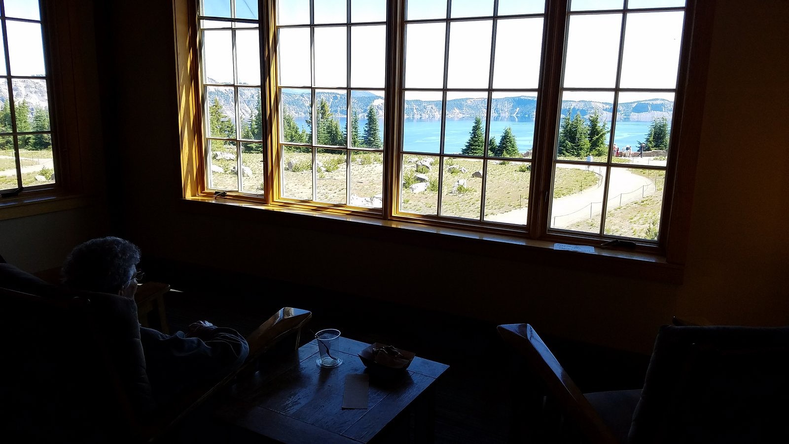 So let’s deal with that question, first. We left home with less than a full battery – we usually charge to 95% instead of 100% (there are reasons), and I forgot to make my usual adjustment for longer trips. I drove the 72 highway miles between Medford and Crater Lake as I have always driven them, a few miles over the 55 mph speed limit, with bursts up to 75 and a bit over for passing out-of-state tourists gawking at the big trees. We covered almost every road in the park (we left out only the road from Rim Drive to the north entrance, and the last few miles of the road to the Pinnacles, neither of which we had time for) – a total distance of 195 miles. We got home with 30% of the battery remaining, and 103 miles left on the range indicator. If you have had any doubts about an electric car substituting perfectly for a gasoline car in all normal circumstances, please lay them aside.