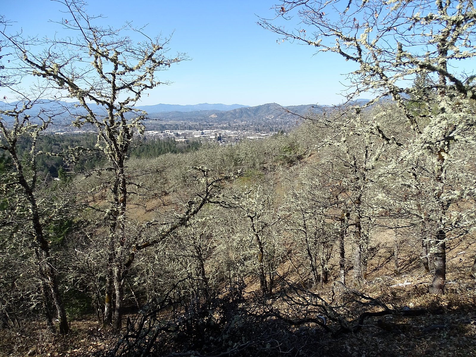 Completing an amble along the Sky Crest loop, we crossed the Timber Riders trail and picked up the Madrone Trail (aren’t there madrones everywhere here?) a few feet further along. The trail climbed gently from this junction to a ridge with big views of Grants Pass through open oak woodland; plenty of Indian warriors; and a lovely collection of grass widows, which hadn’t shown themselves at all on the Sky Crest loop.