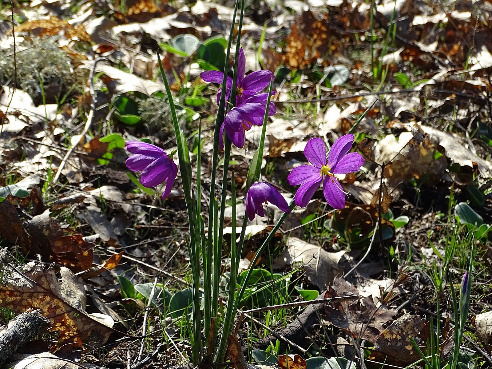 Wildflower season has finally arrived in southern Oregon. Two weeks ago, we took the Tunnel Ridge trail in the Siskiyou foothills south of Jacksonville – an excellent early-season wildflower hike, most years – and saw nary a flower. This week, though, in the Cathedral Hills just outside Grants Pass, the story was different. There was a scattering of milkmaids (Cardamine californica) along the two trails we took. There was a concentration of grass widows (Olsynium douglasii) along one ridge. And Indian warriors (Pedicularis densiflora) were popping out of the ground everywhere.