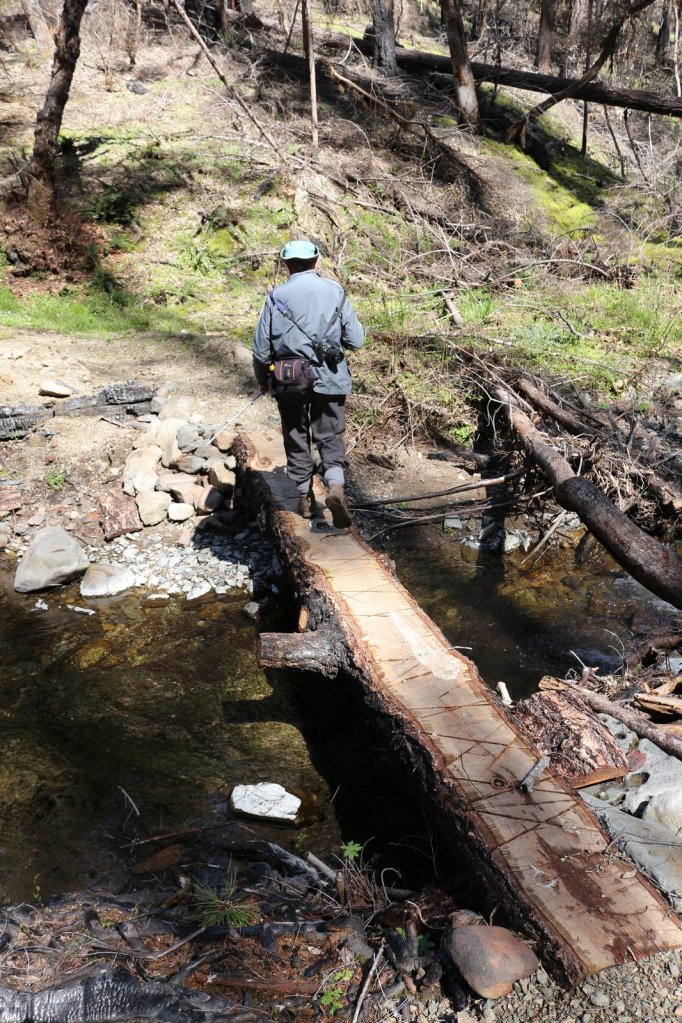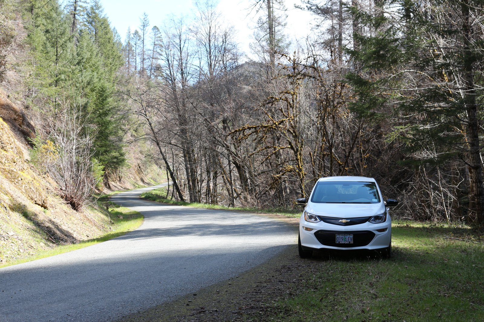 We stopped once on the way out, at a trailhead near China Creek, to check the status of a footbridge built there just two years before the fire (it had survived) and headed for home, pulling into the driveway shortly after 5:00 pm with half of the Bolt’s battery still unused. We could have done it again, but although the car had plenty of energy, the two humans in it were happily tuckered out. Another time.