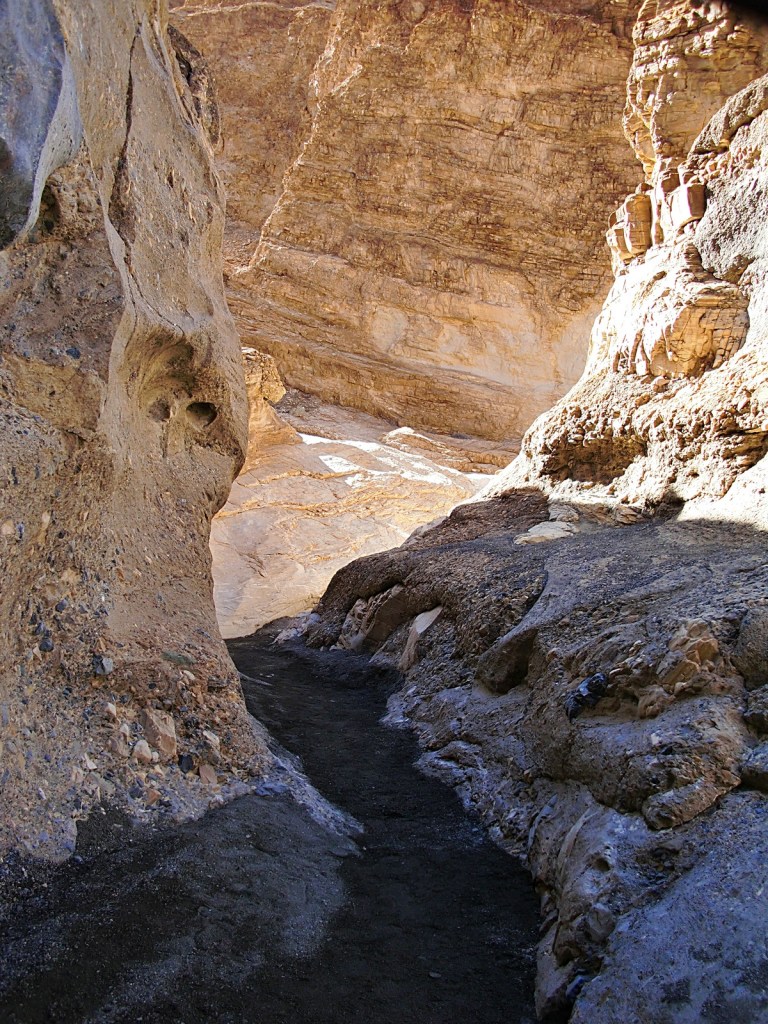 If one has any sense, one stays away from Death Valley in the summer. So we came in the winter, in February, 2010, climbing up and over the Panamints from a night spent in a motel in Ridgecrest, California. Much of northern California and Nevada were snowbound that week, but temperatures in Death Valley were in the 80s. We camped at Furnace Creek and spent two days exploring the valley – hiking some of the slot canyons, visiting Badwater, photographing late-afternoon light on the Mesquite Dunes, and topping the experience (literally) with a drive to Dante’s View, a vertical mile directly above the Badwater Basin on its east side. The captions of the pictures will tell you a bit more of the story. Enjoy.