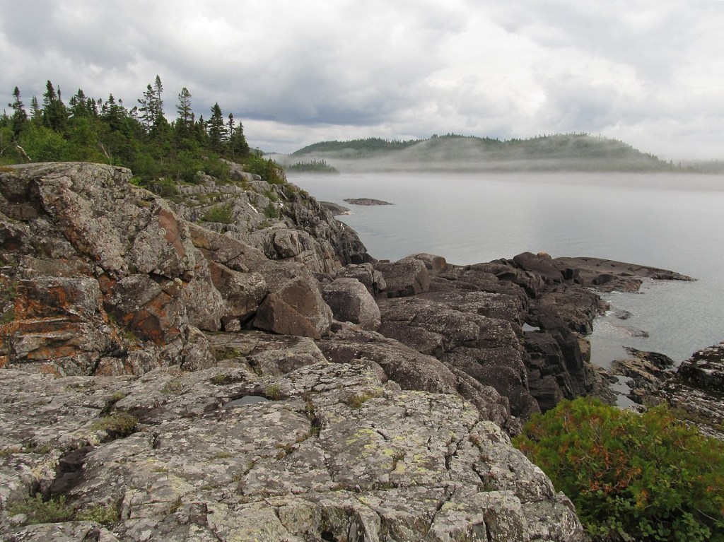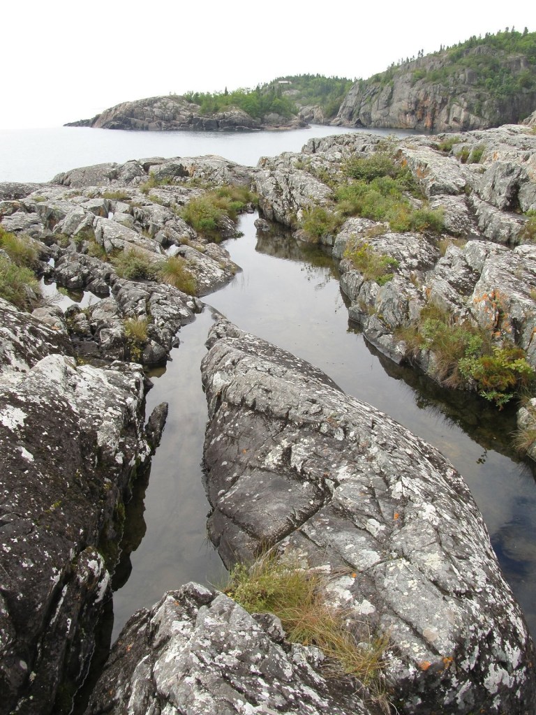 The Canadian shore of Lake Superior, all 1500+ miles of it, is made of granite. Canadian Shield granite, among the oldest and toughest rocks on the planet. The continental glacier ground across this broken landscape two miles thick, back in the Pleistocene – 570,000 pounds of ice per square foot – and it still couldn’t do much more than sand off the edges.